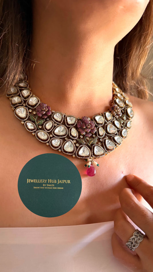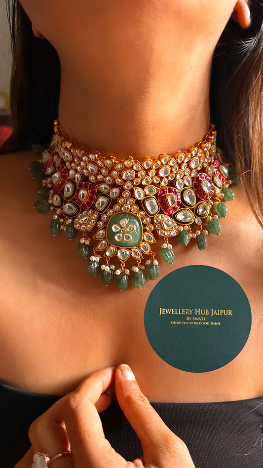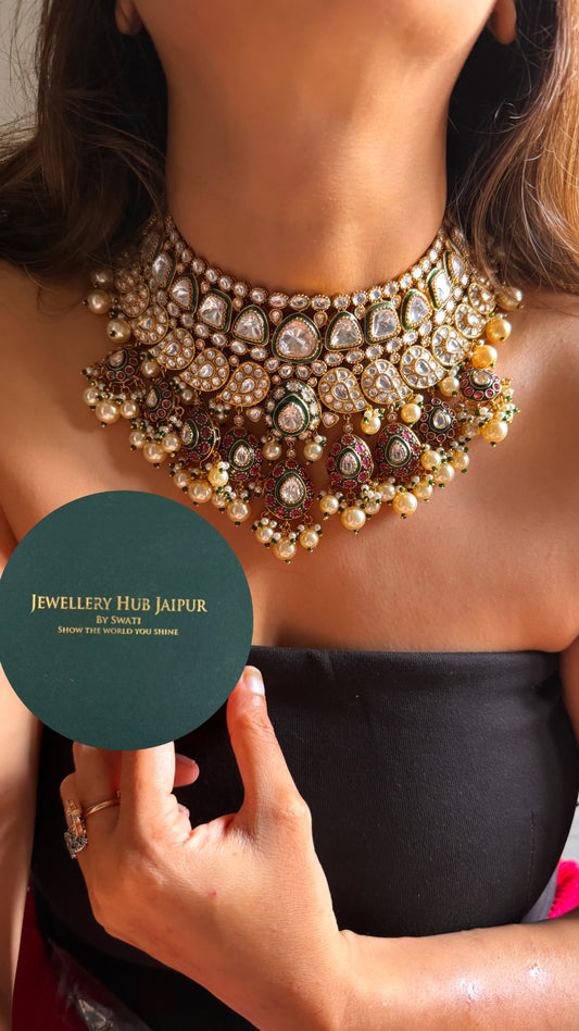 Gaurangi Uncut polki meenakari pearl bridal necklace