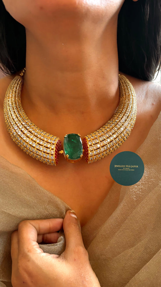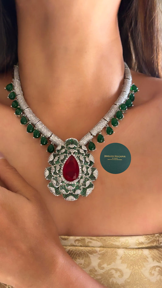Cocktail Ruby & Cz Bridal Asia Necklace set with earrings