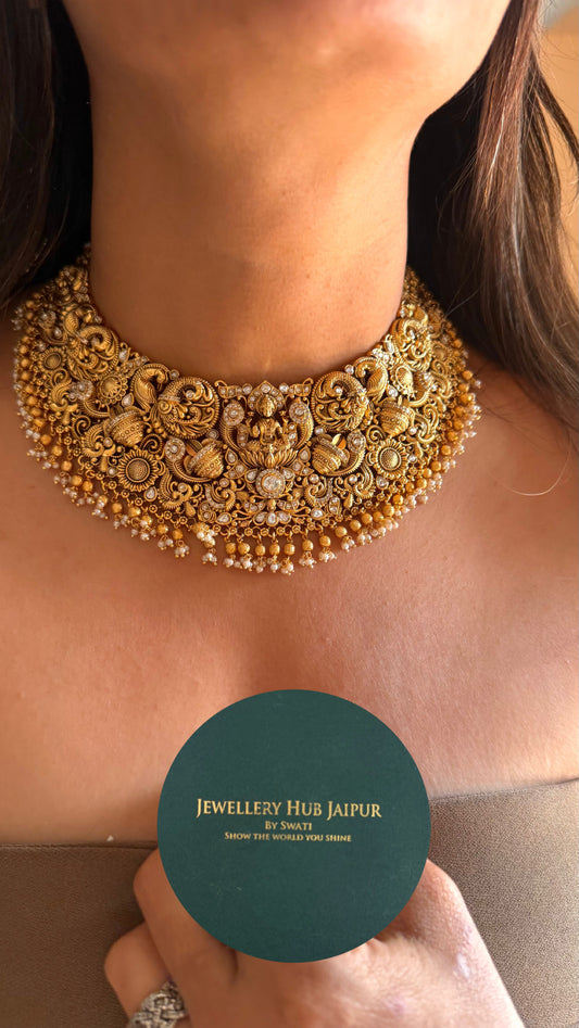 White moissanite with goddess Laxmi collar Necklace