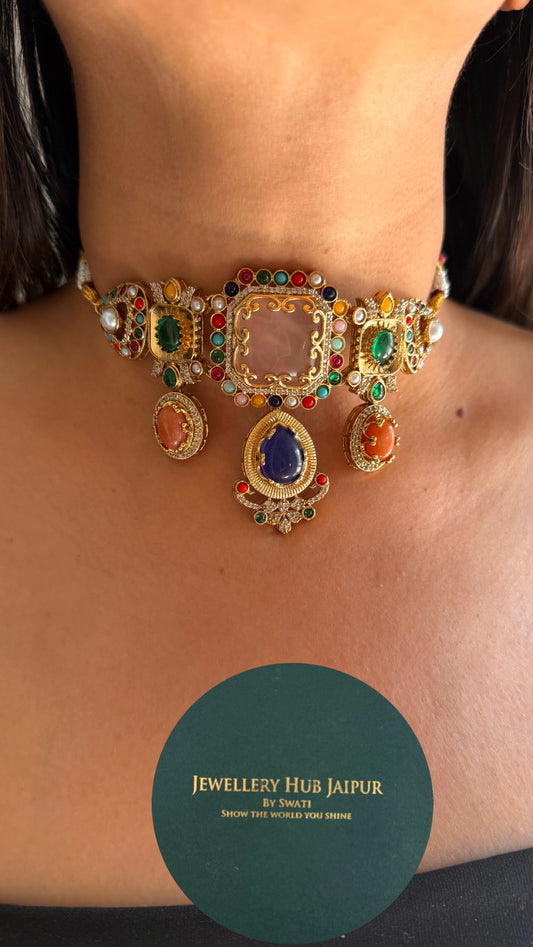 Sabyasachi inspired vintage navratna necklace