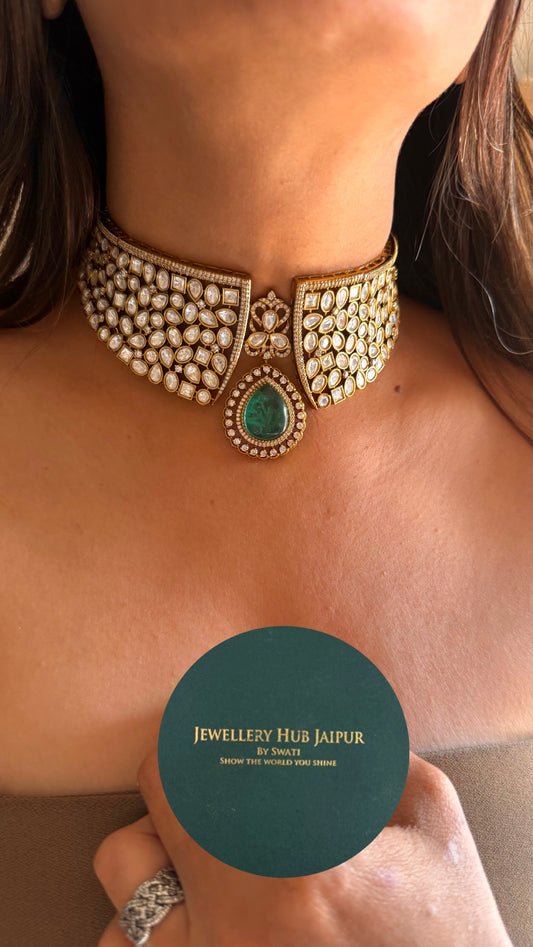 Emerald moissanite polki Victorian choker