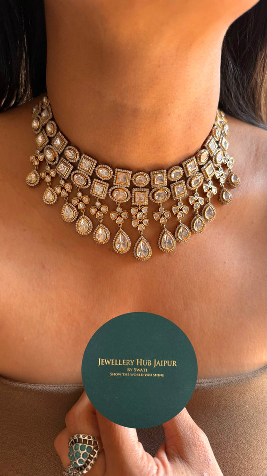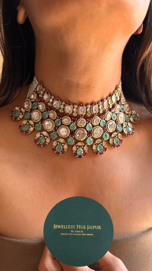 Real moissanite polki victorian choker set