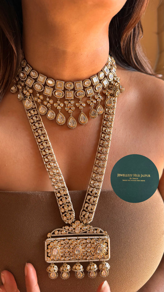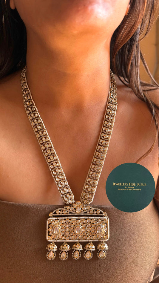 Moissanite polki victorian long necklace set