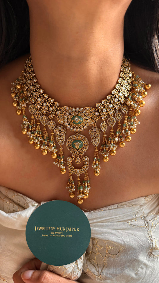 Real Moissanite Rajwada peacock Sapphire & ruby necklace