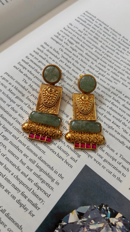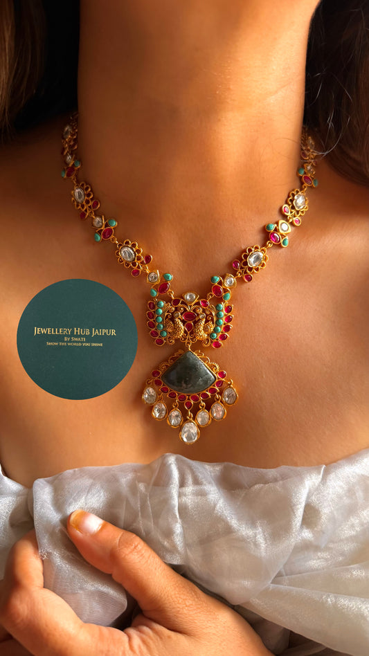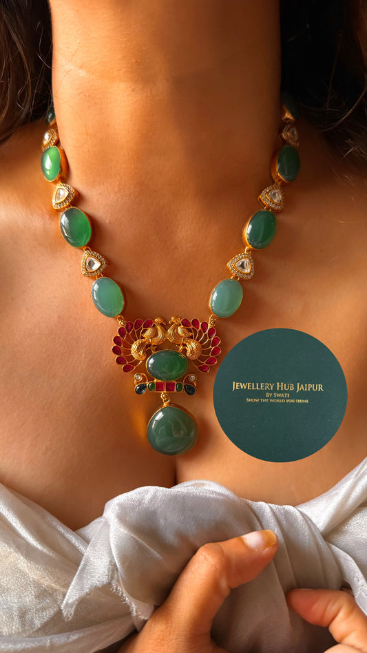 Amrapali inspired Natural stone Shades of emerald real stone with peacock design set