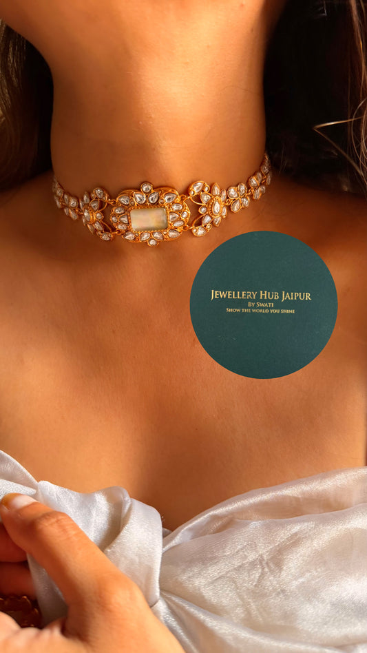 Amrapali inspired Natural Mother of pearl polki designer choker set