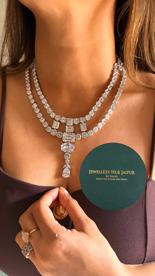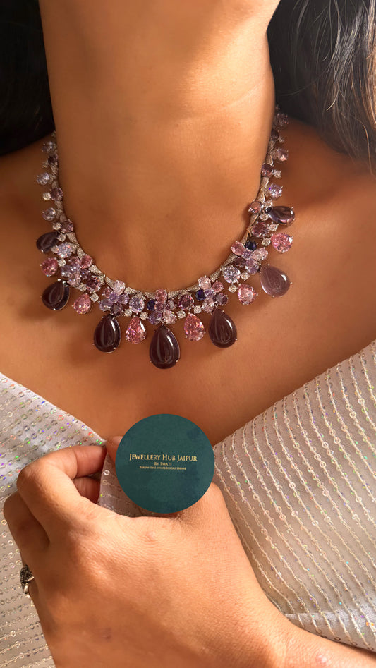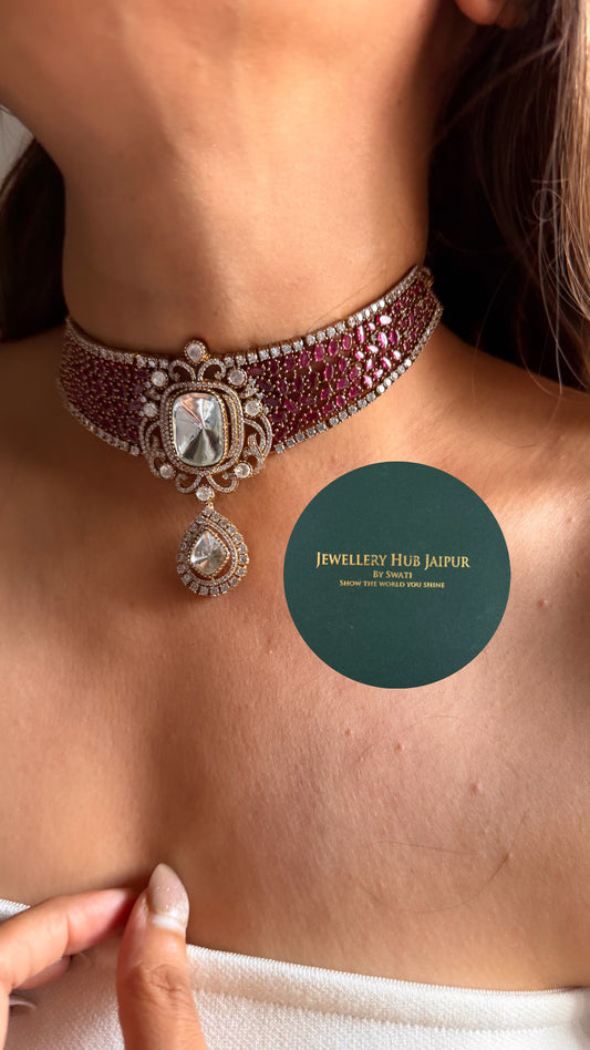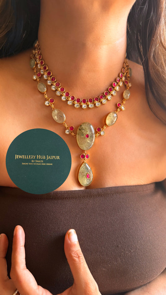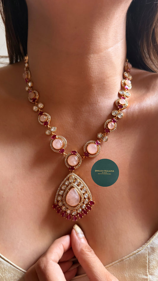 Amrapali inspired Natural stone rani pink moissanite dual layer collar set
