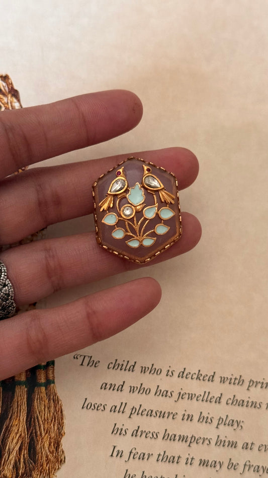 Amrapali inspired Real stones peacock inlay adjustable ring