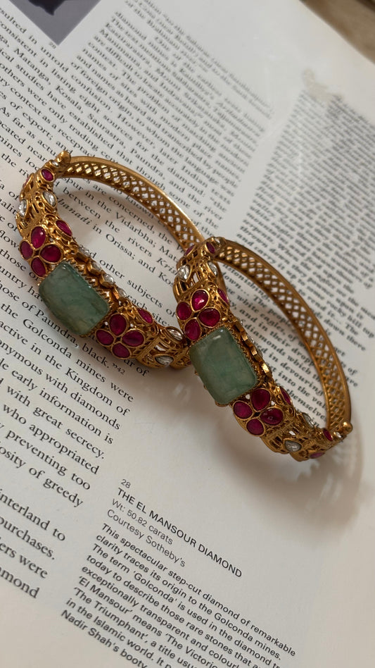 Amrapali inspired Natural stone Rani pink & emerald rajwada aad style set