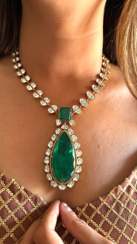 Kajol Mint doublet & rani pink moissanite with pearl drop choker