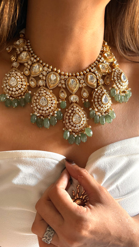 Real uncut moissanite polki & mint Swarovski designer collar set