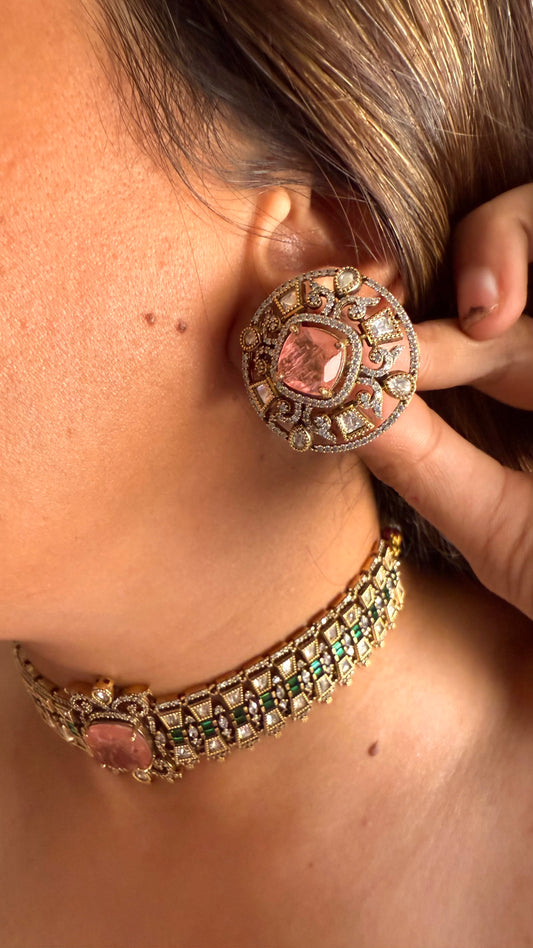 Rose quartz & moissanite polki designer choker set