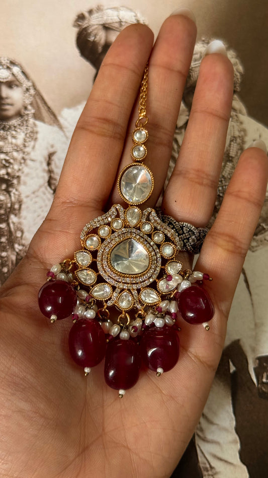 Triple line ruby moissanite ling rani Har with strawberry drops