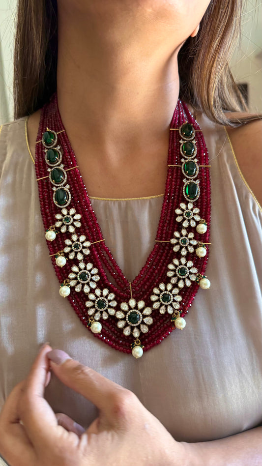 Vrishti Emerald & Ruby Moissanite Chandi polki necklace