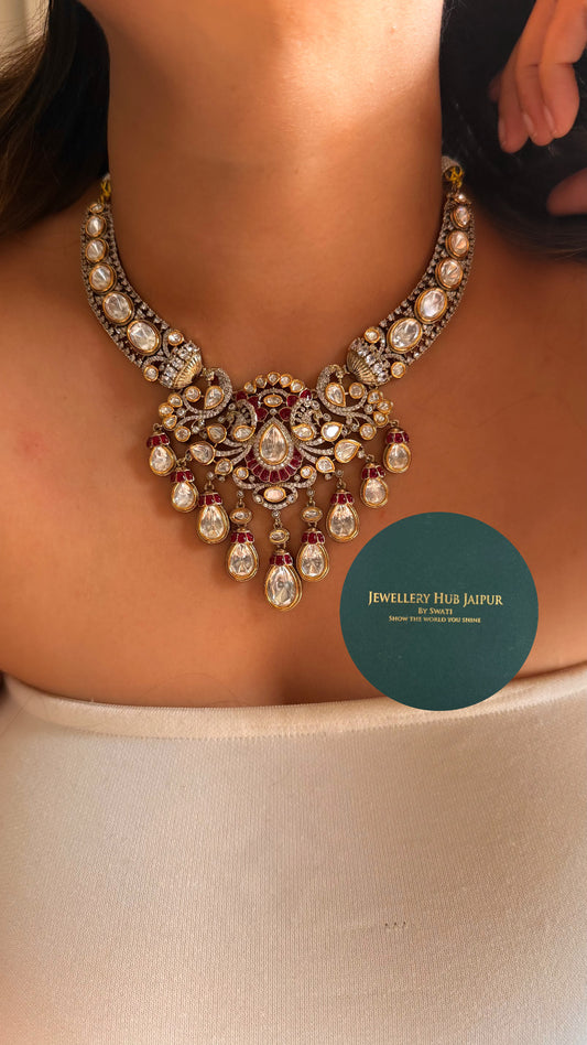 Vintage Ruby moissanite polki heritage designer collar set