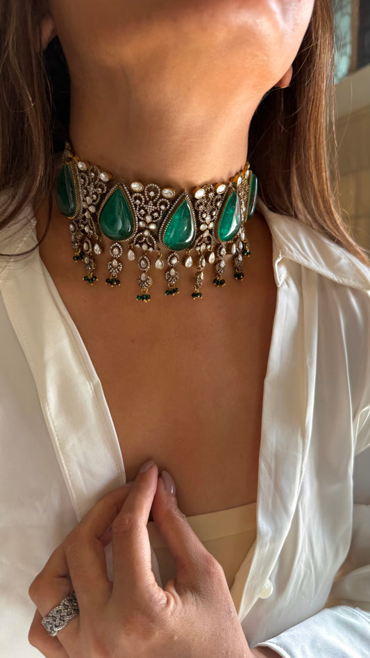 Yugma Emerald doublet victorian moissanite choker