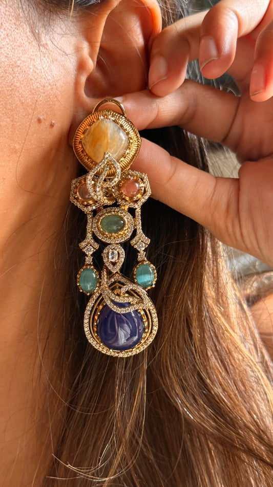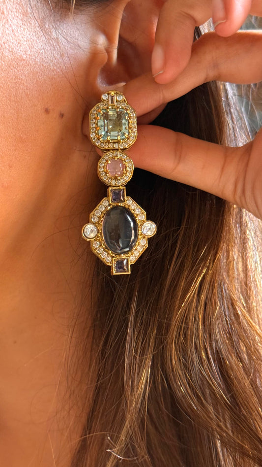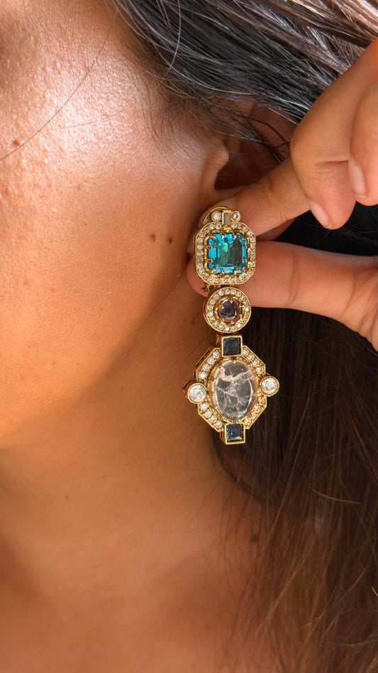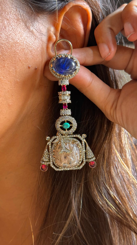 Sabhyasachi inspired Sapphire doublet designer cocktail danglers