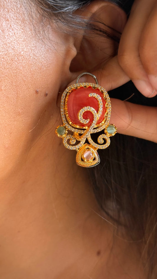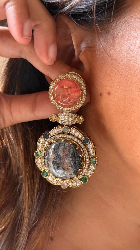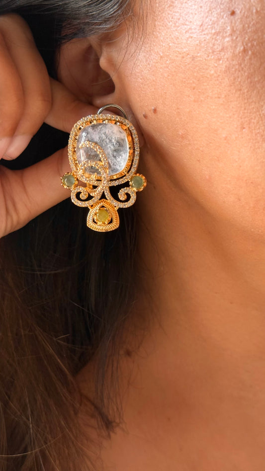 Saffron, mint & rose quartz doublet designer cocktail studs