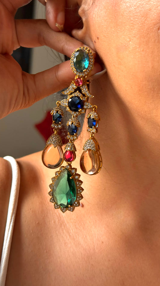 Sabhyasachi inspired navratna danglers