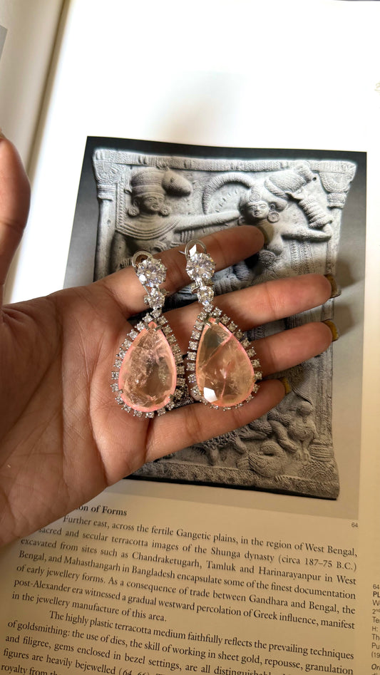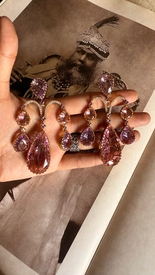 Sabyasachi inspired light tanzanite & rose quartz danglers