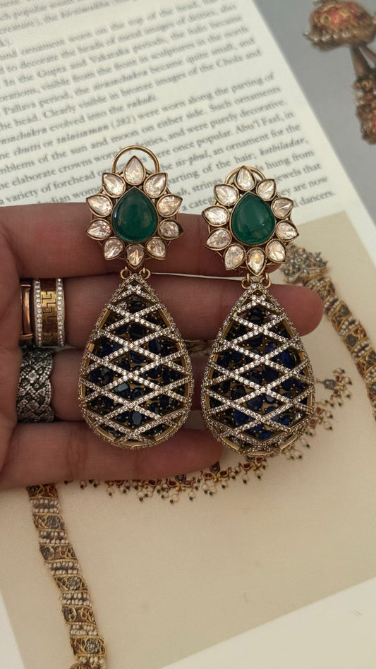 Sabyasachi inspired Sapphire colour danglers