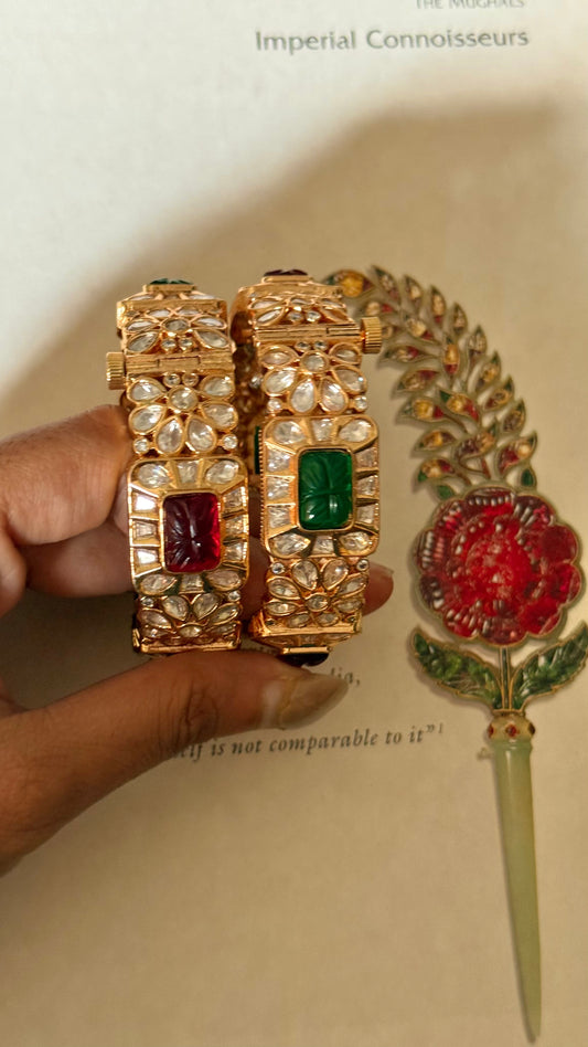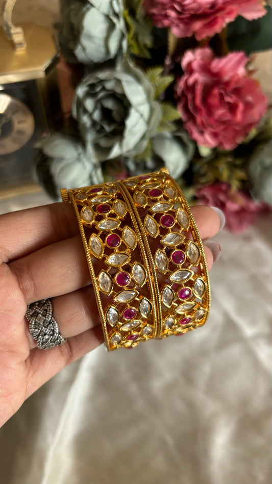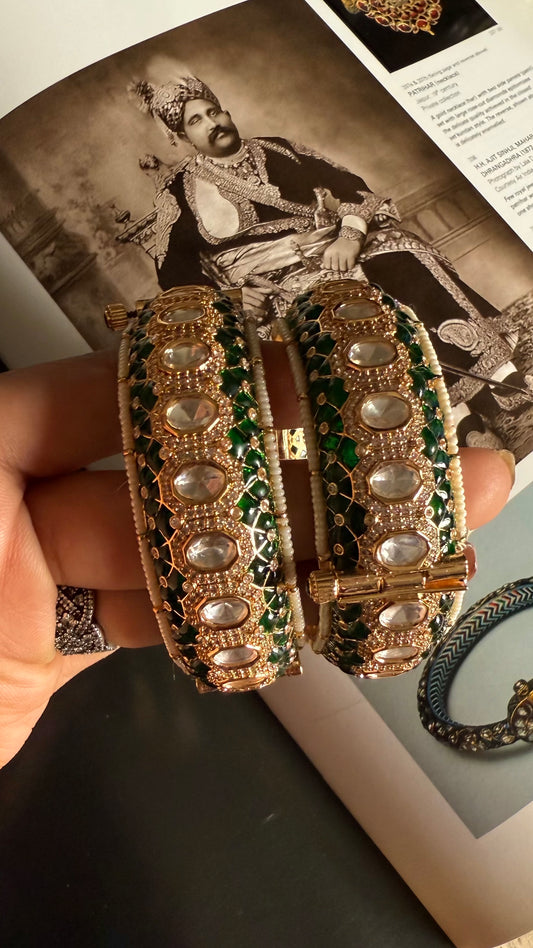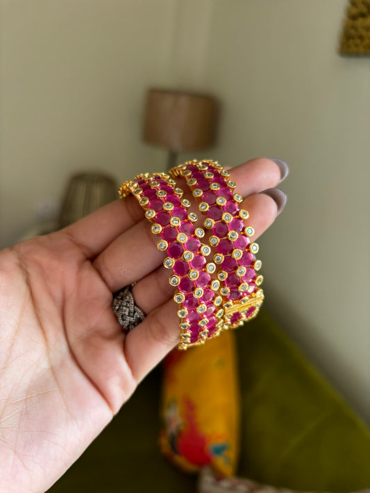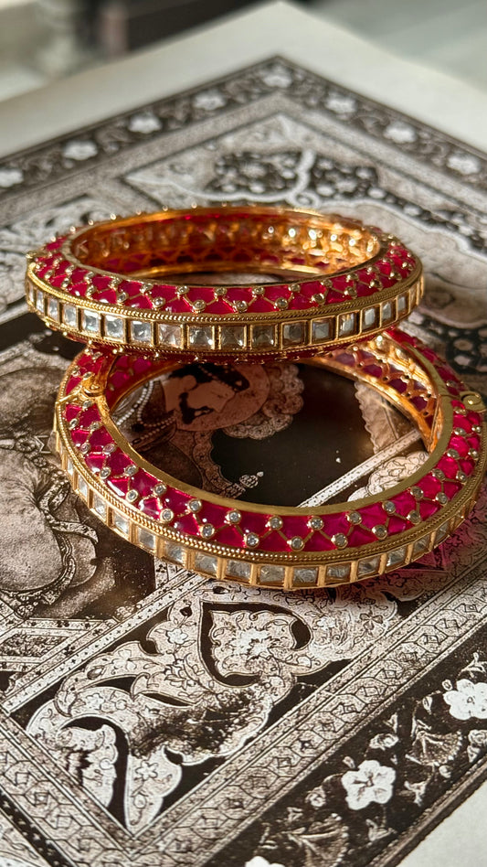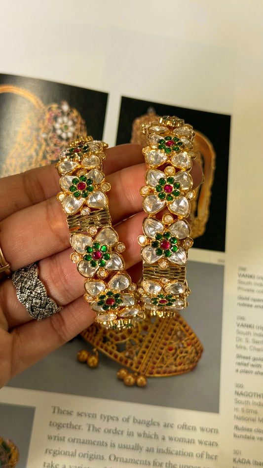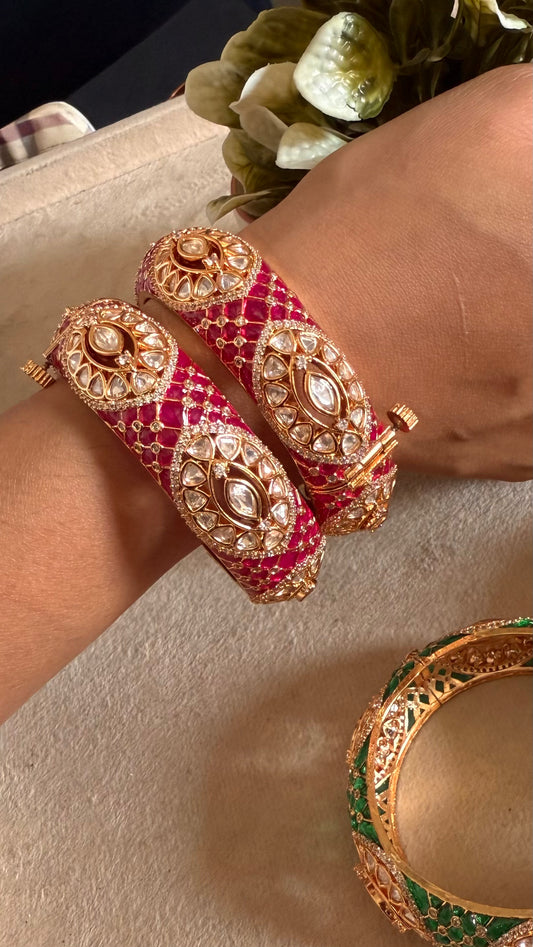 Real Moissanite Rani pink & emerald heritage openable bangle