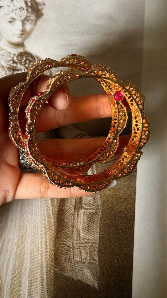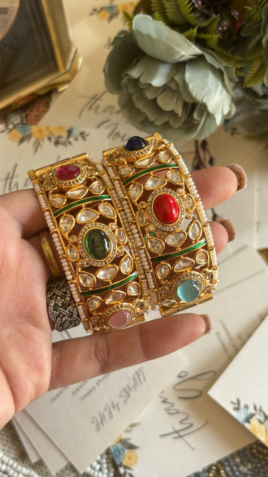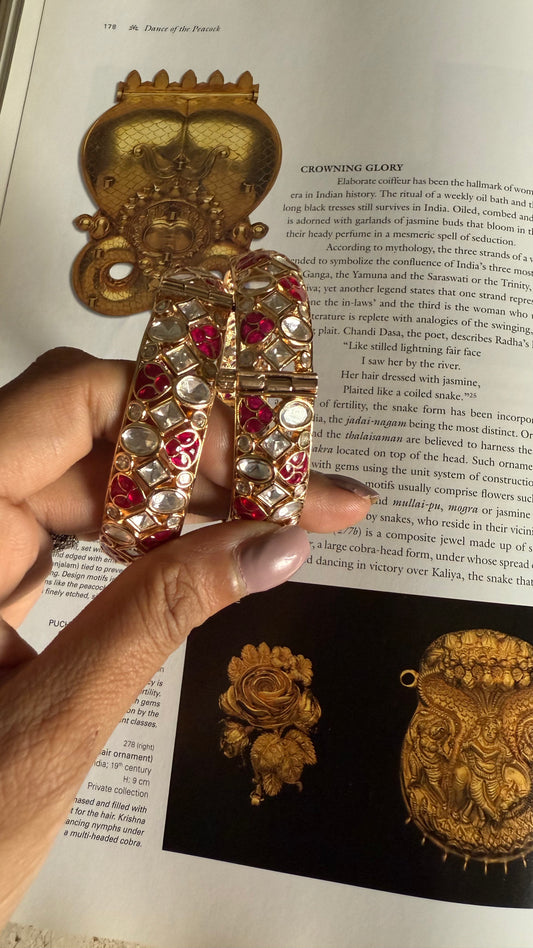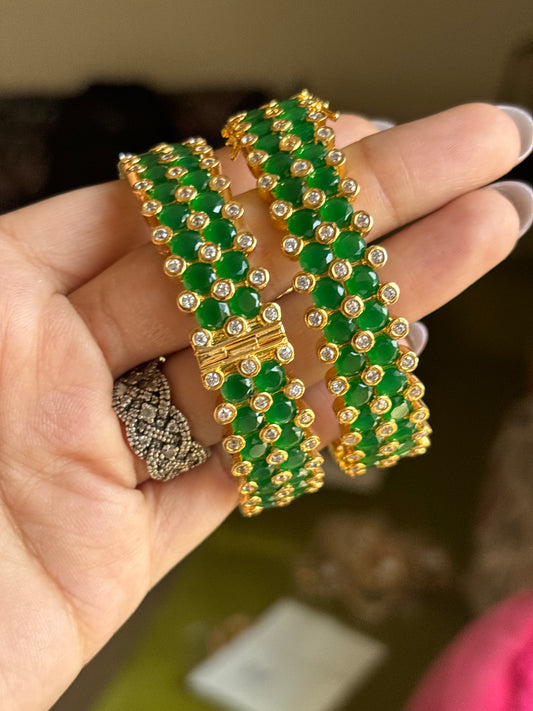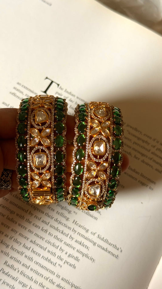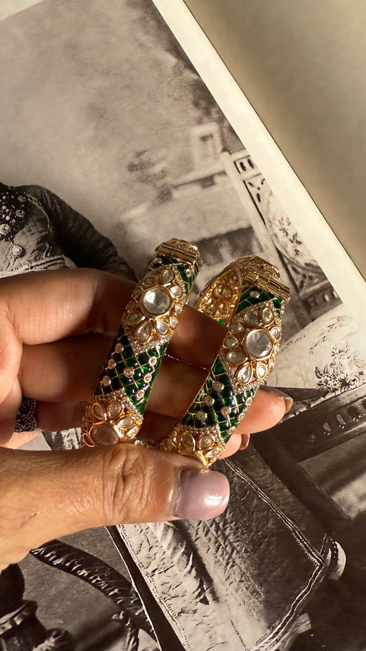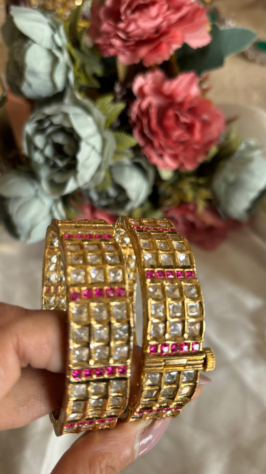 Real Moissanite Rani pink & emerald heritage openable bangle