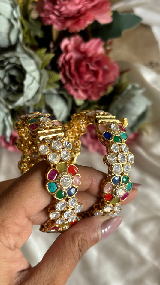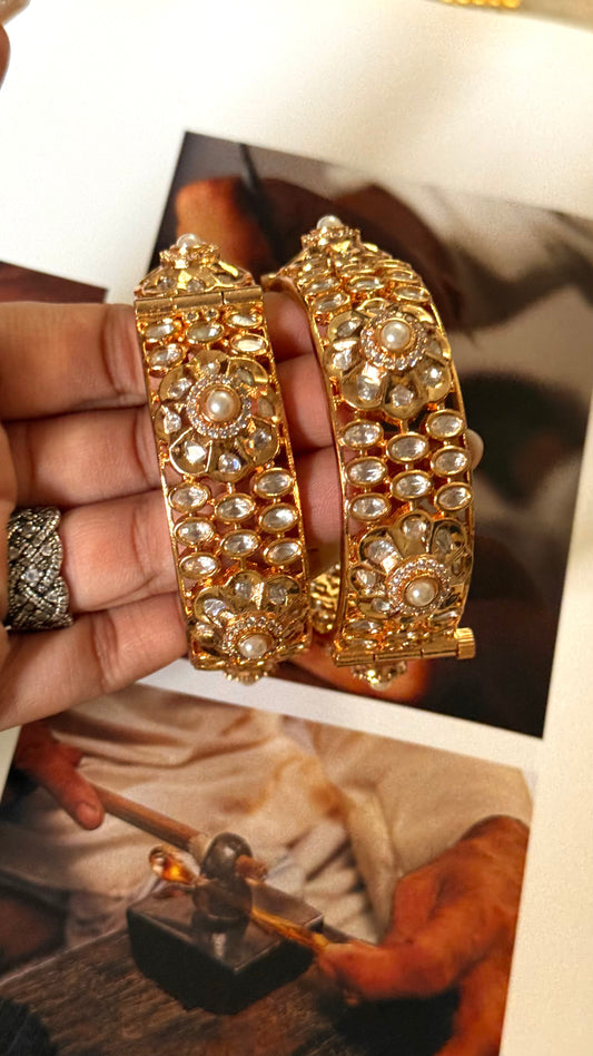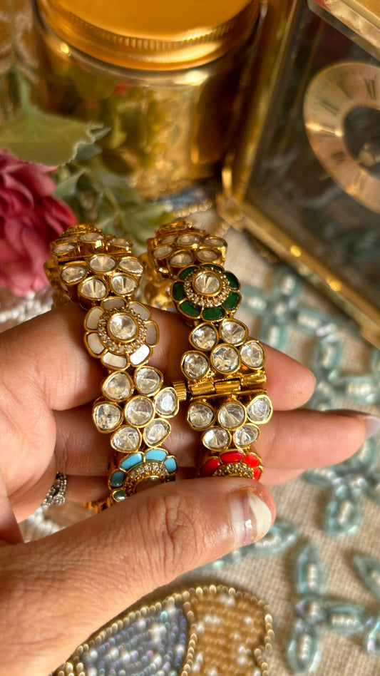 Paachi Mother of pearl floral mogra detailing openable bangle