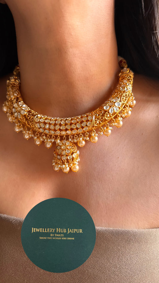 Peeli polki moissanite gold Hasli with pearl detailing
