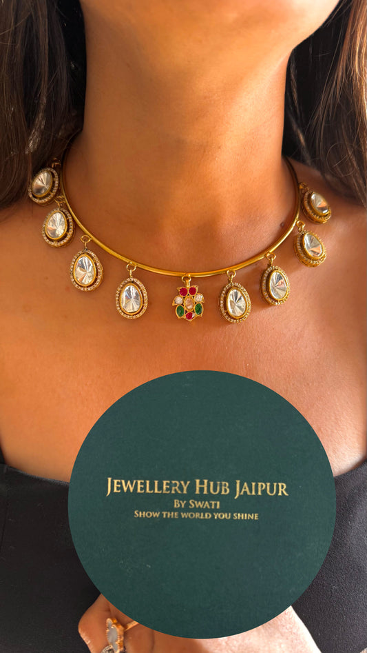 Moissanite uncut polki & emerald designer hasli