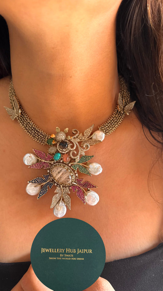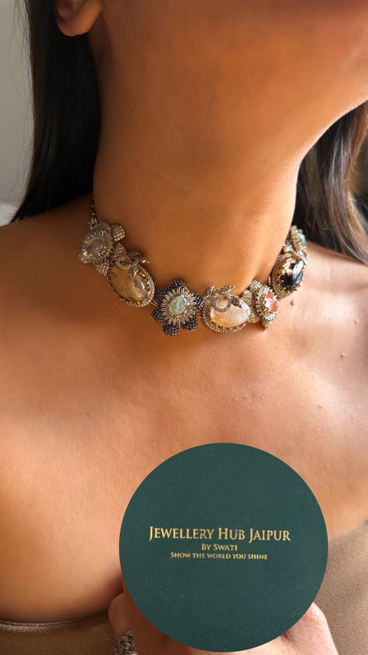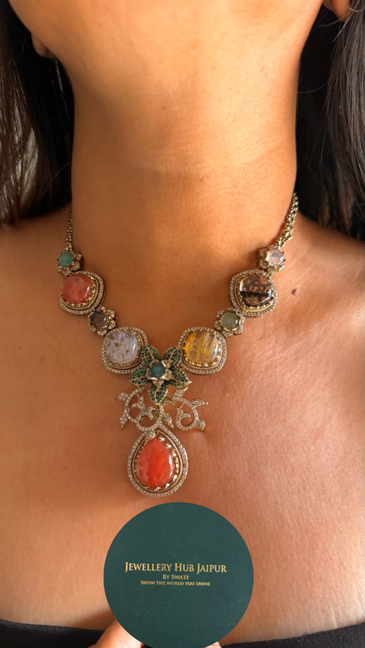Sabyasachi inspired real stone floral multicoloured necklace