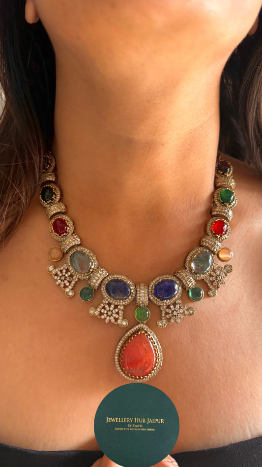Sabyasachi inspired vintage navratna necklace