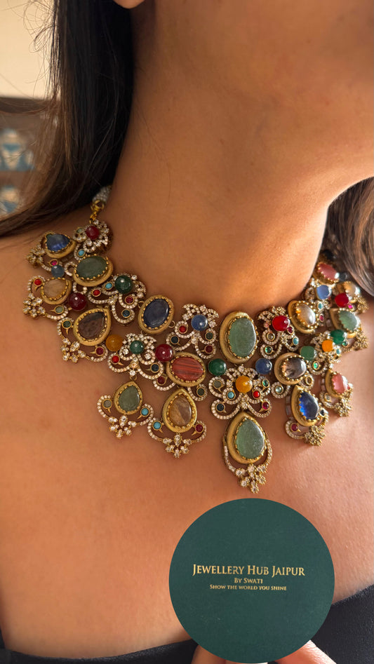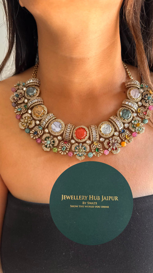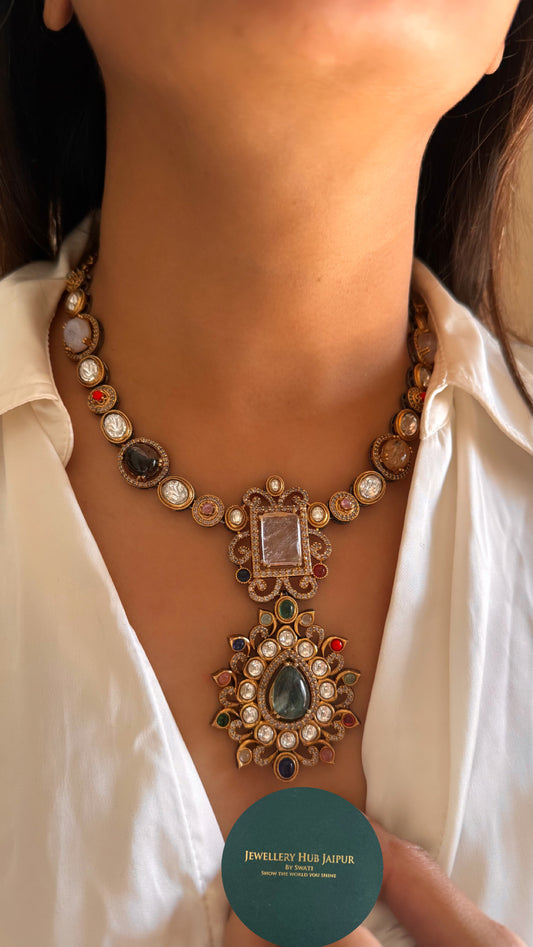 Vintage sabyasachi inspired designer navratna Necklace