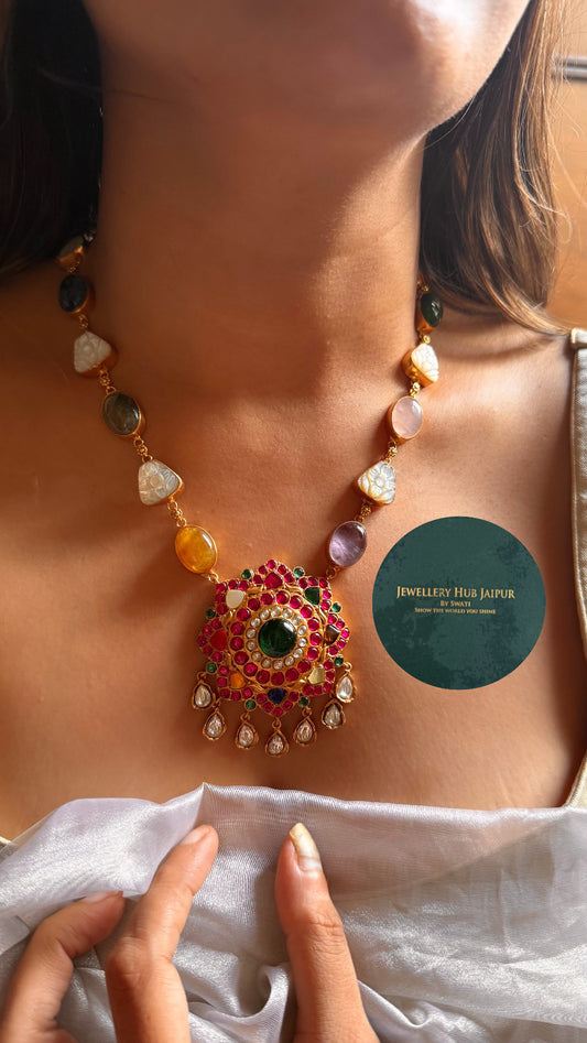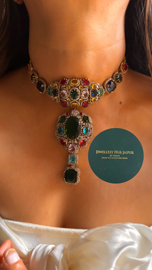 Amrapali inspired Natural stone Mint doublet with navratna collar set