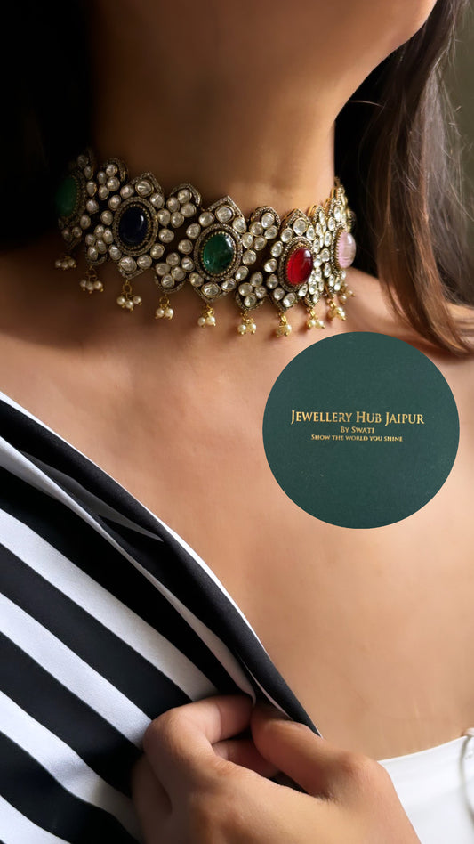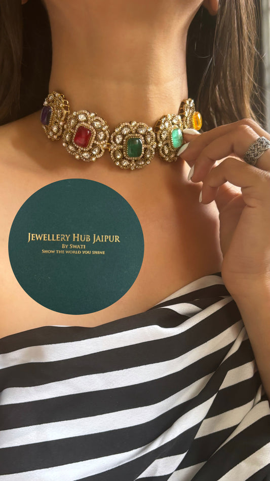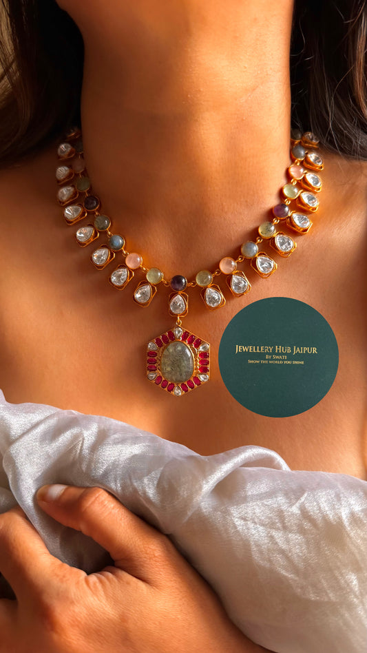 Sabyasachi inspired Navratna & moissanite polki collar set