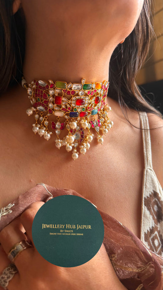 Navratna with peeli polki choker set