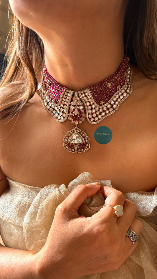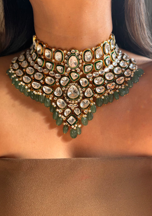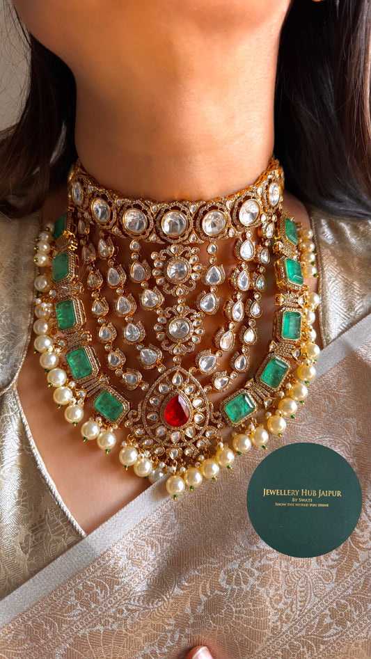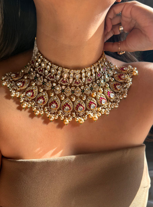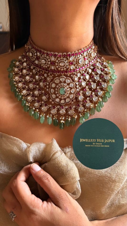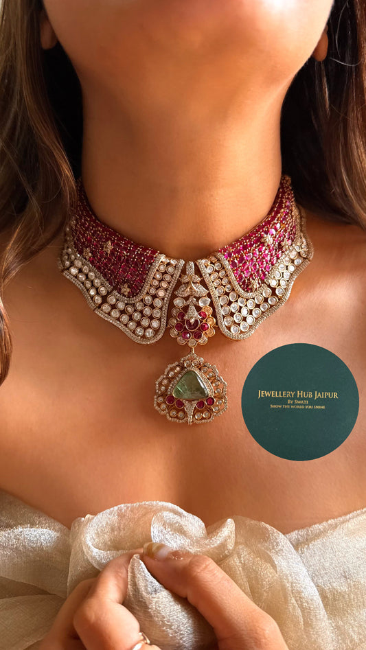 Rani pink & Emerald bridal Asia inspired statement choker (takkar work)