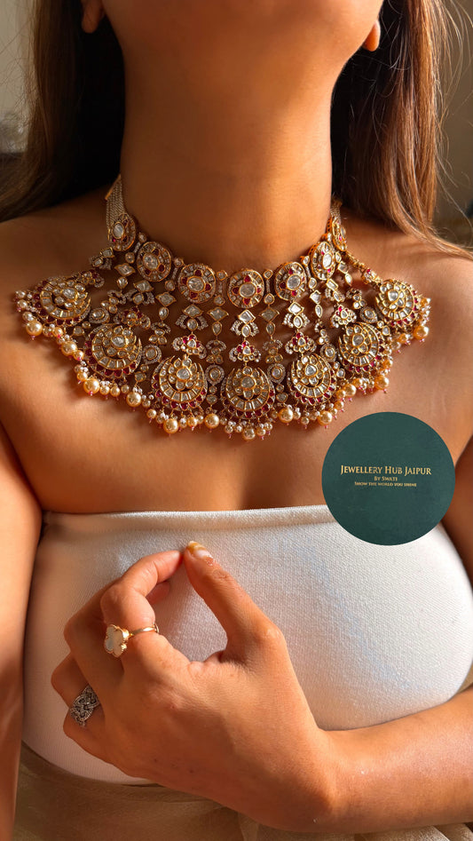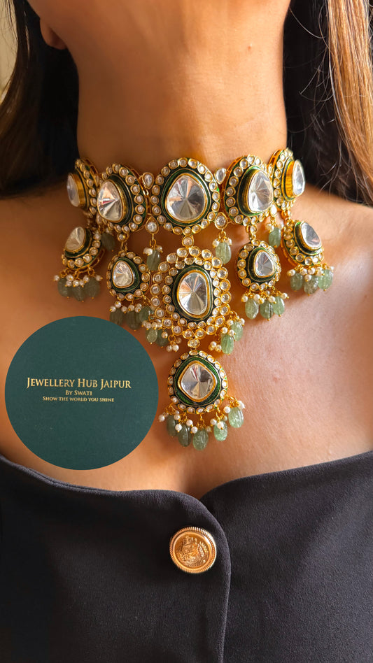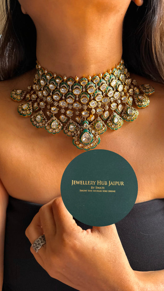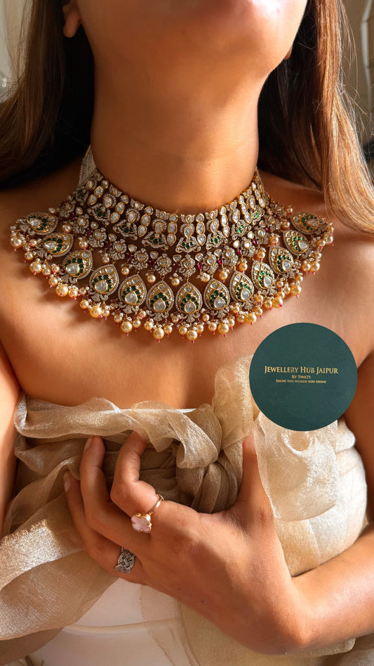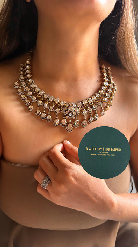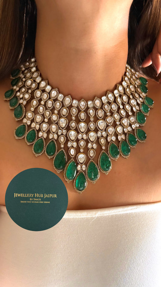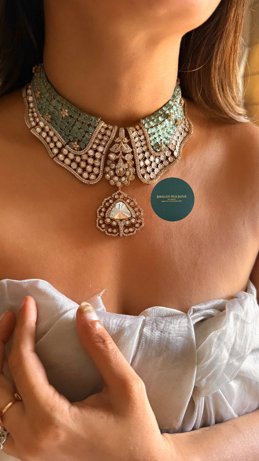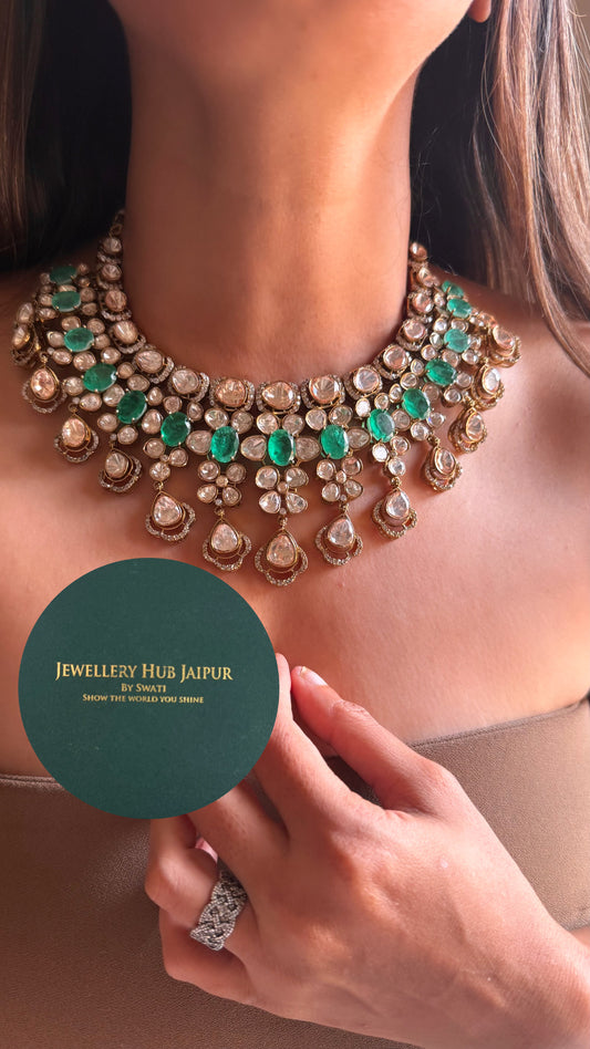 Real uncut moissanite polki floral designer collar set (will be in 5 days from the date of order)