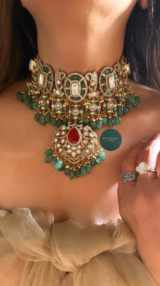 Emerald & Rani pink bridal Asia inspired statement choker (takkar work)