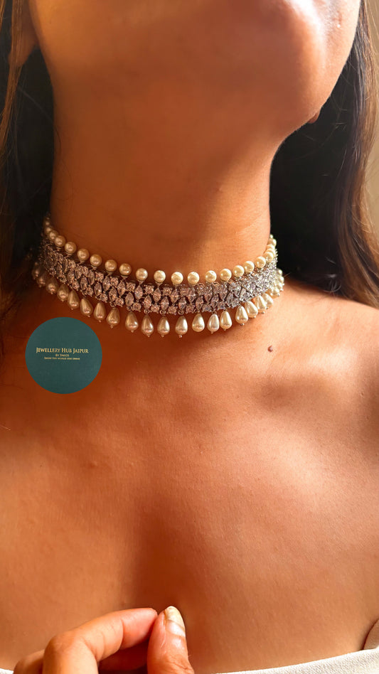 Celeste Cz diamond with pearl drop choker set