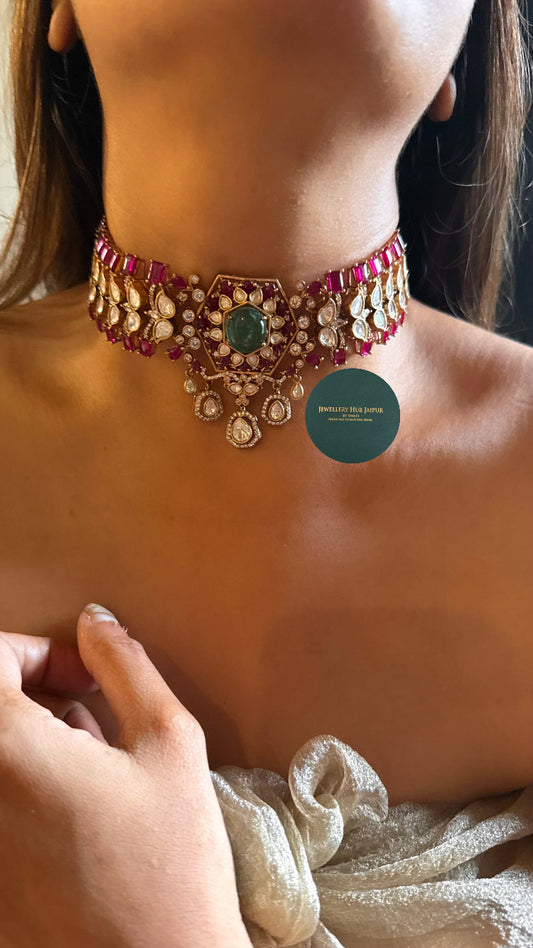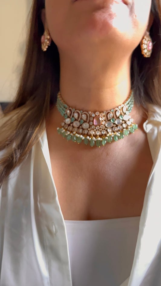 Mint doublet & Rani pink moissanite choker set