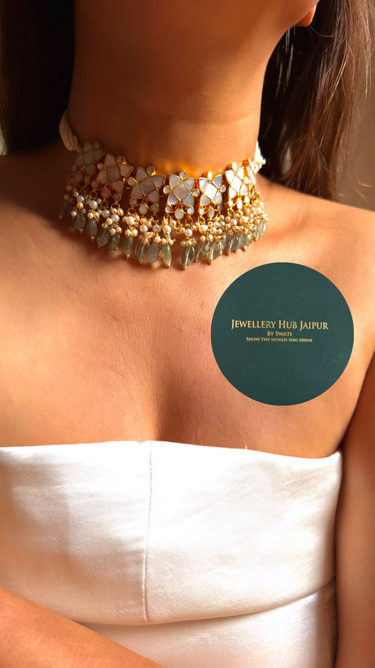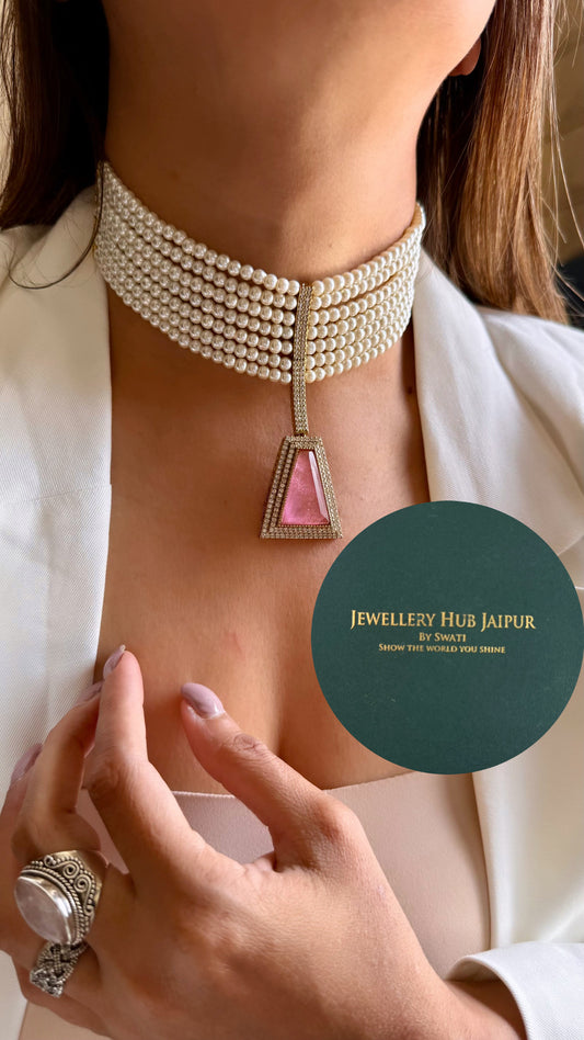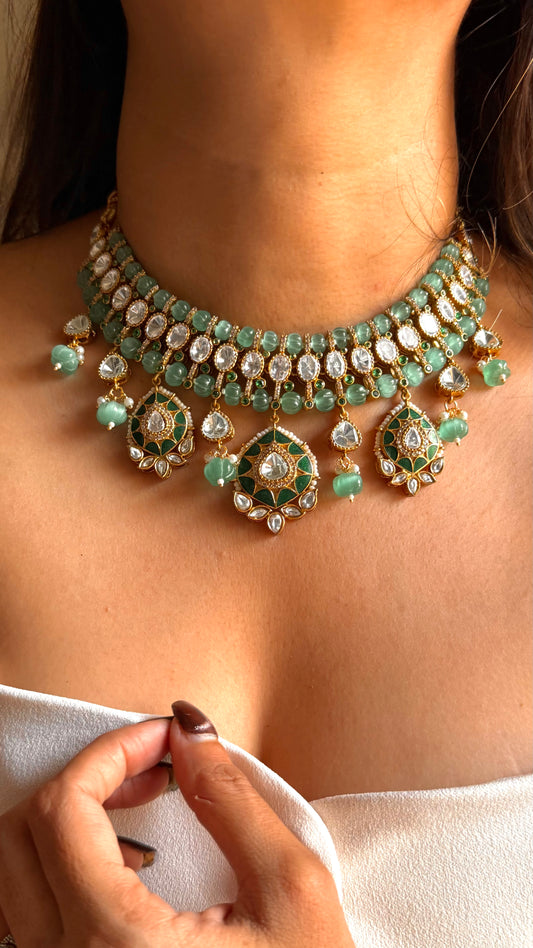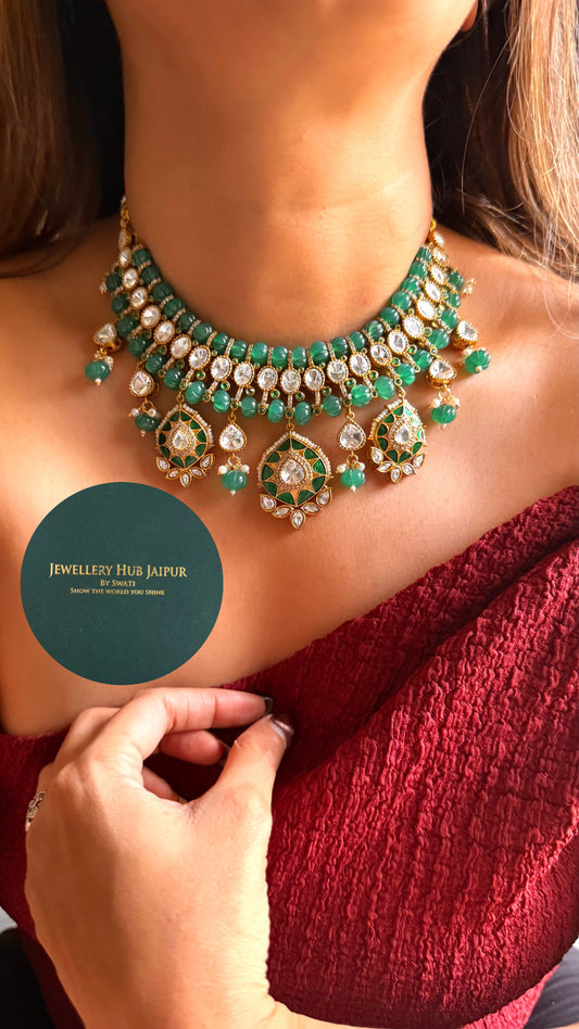 Mint rani pink doublet moissanite & emerald katdana collar set