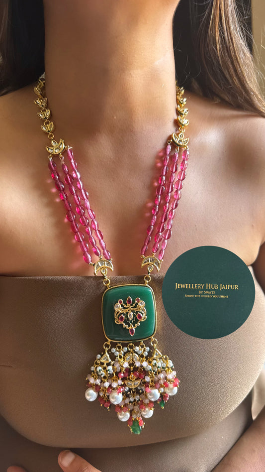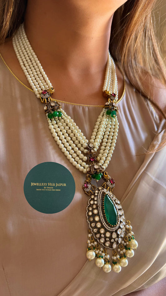 Ekisha Gajanand emerald & Ruby moissanite rani haar