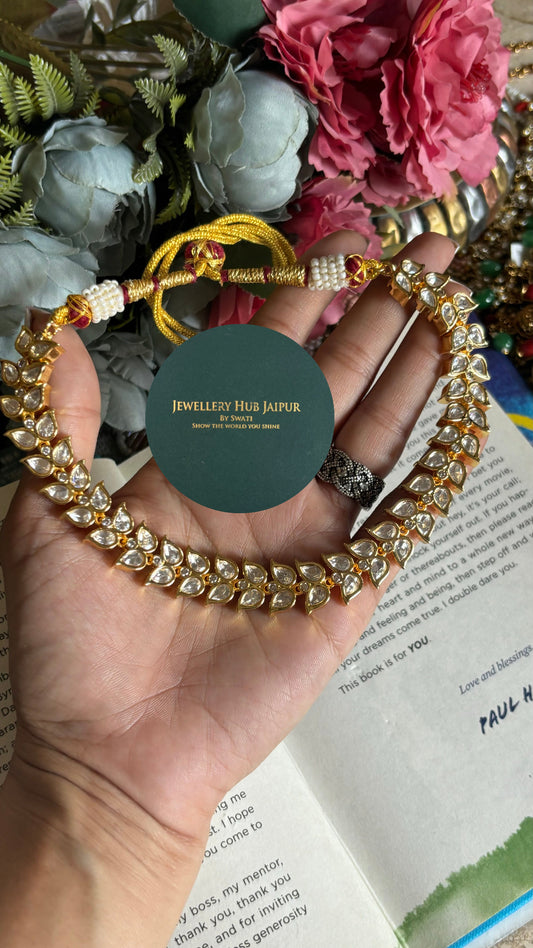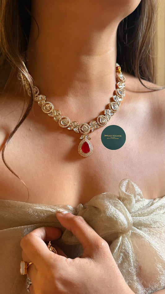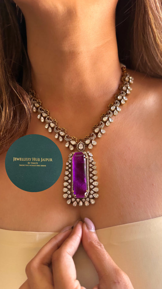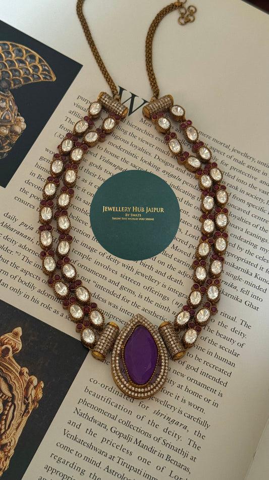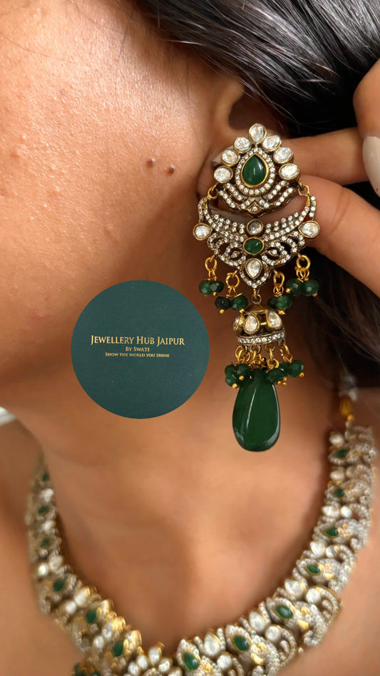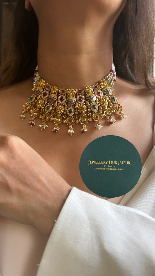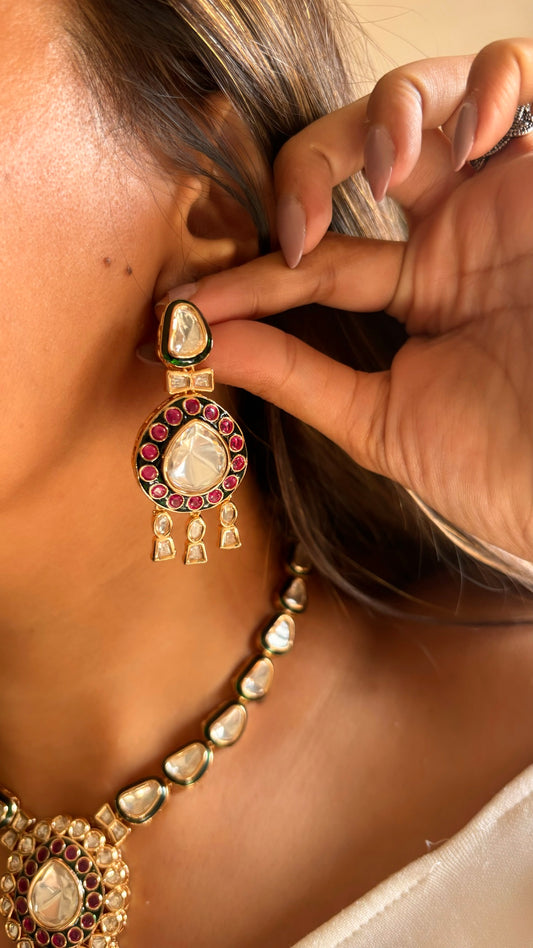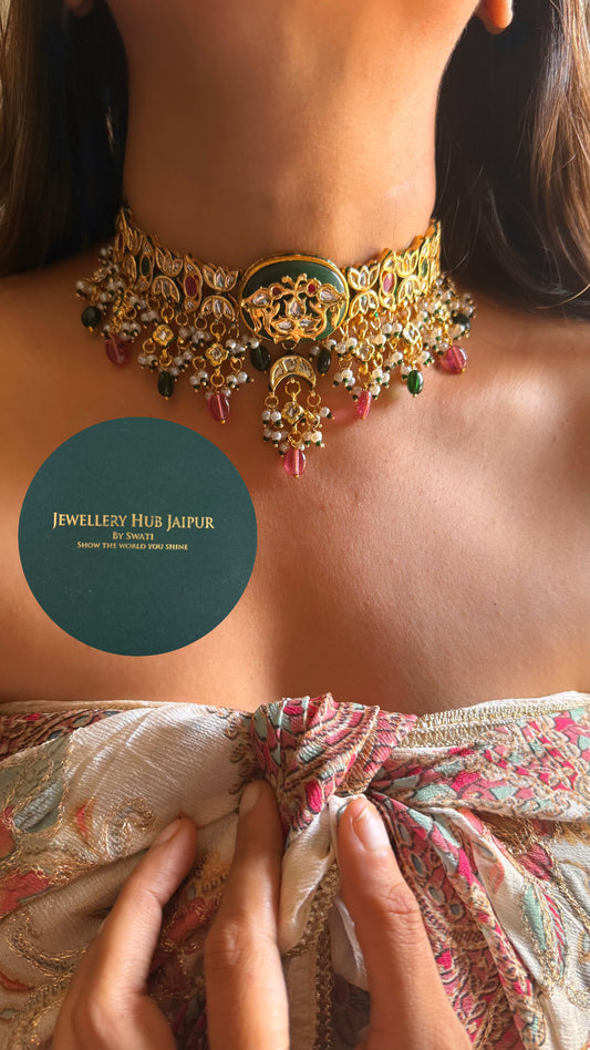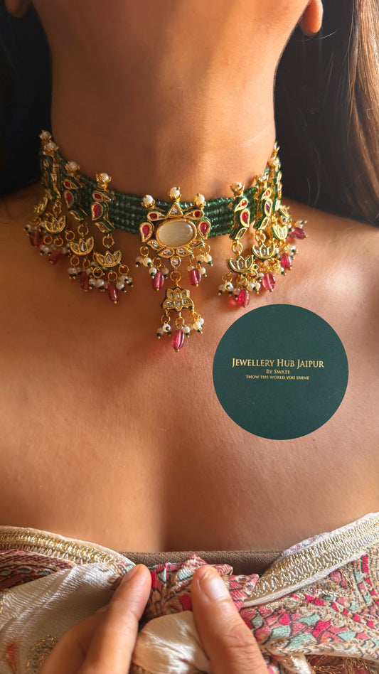 Rani pink & emerald meenakari paachi with rani pink drops paachi choker set (made on order in 10 days)