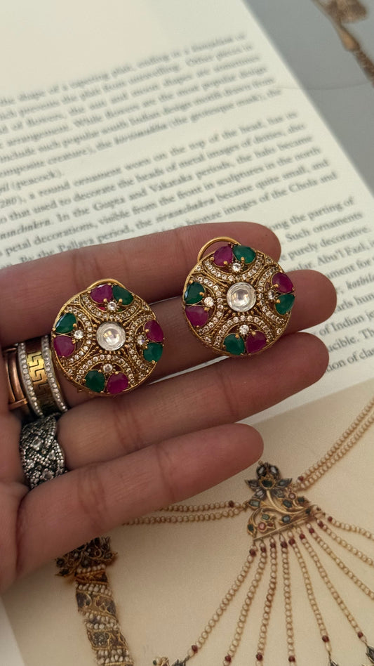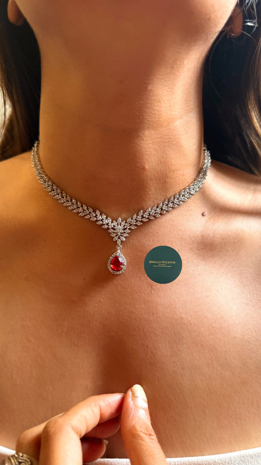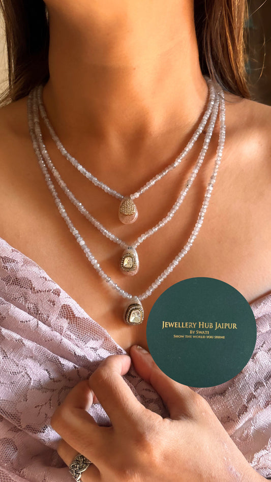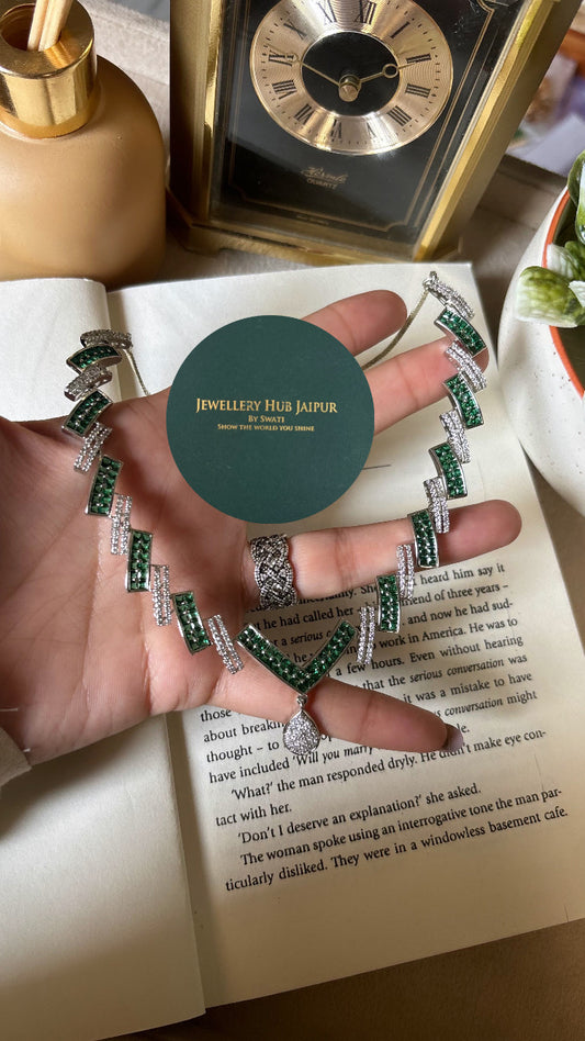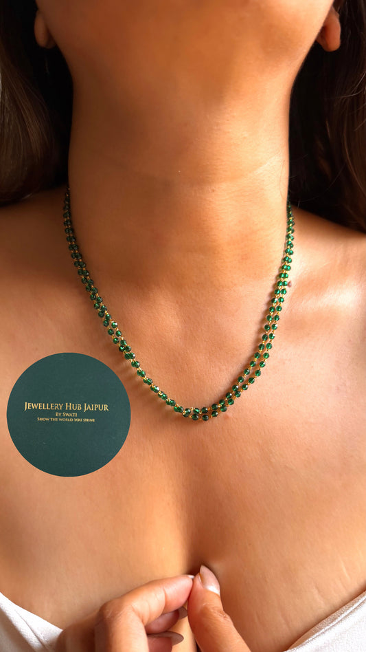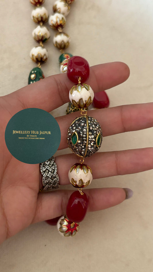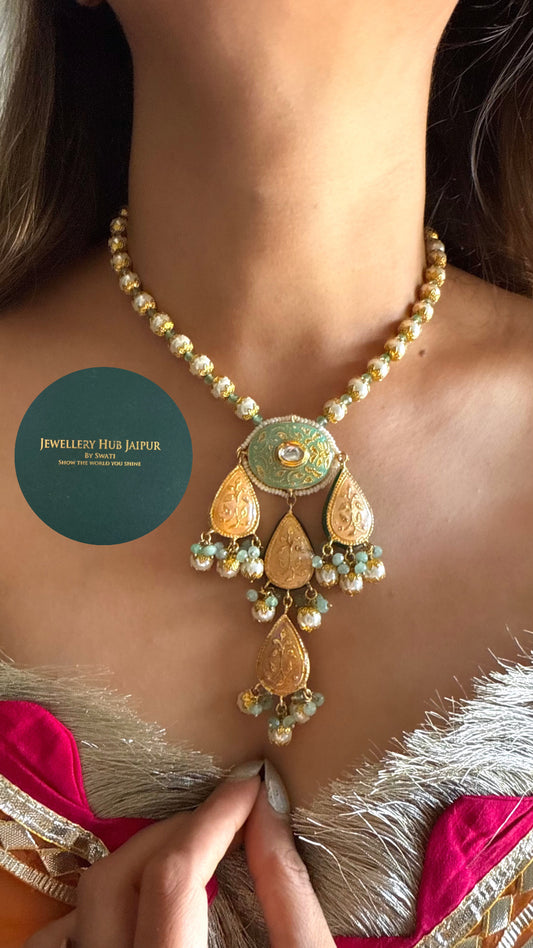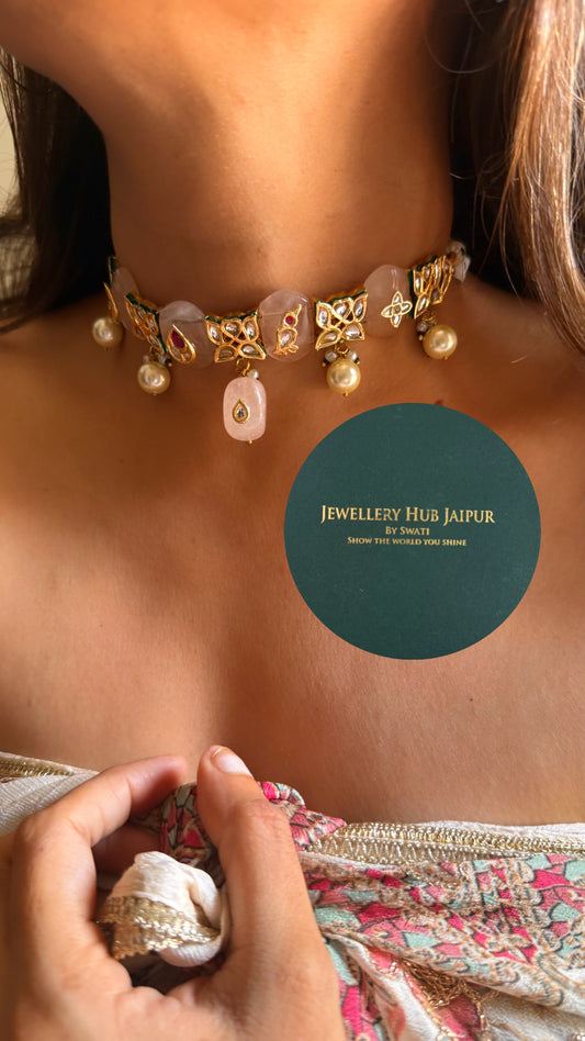 Rose quartz inlay work & emerald meenakari paachi choker set