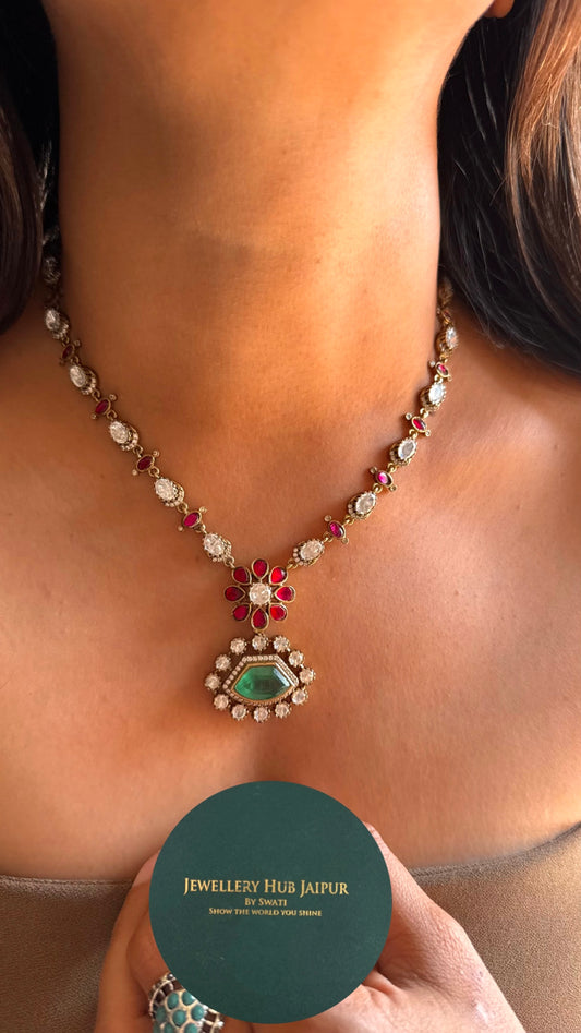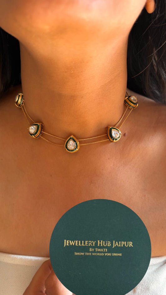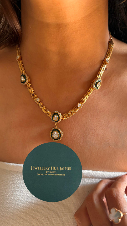 Emerald gold meenakari minimalist necklace
