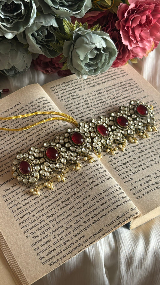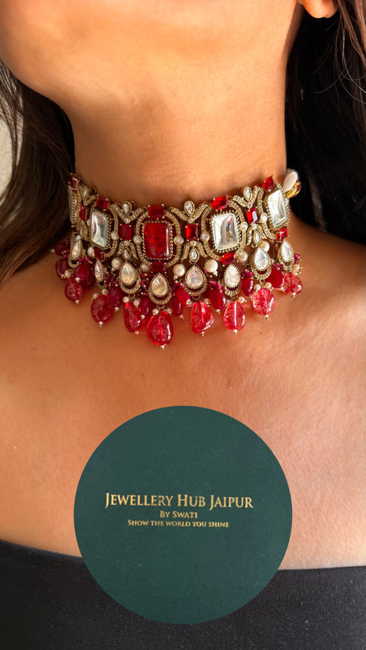 Ruby victorian choker with glass drops