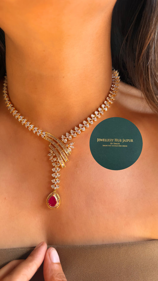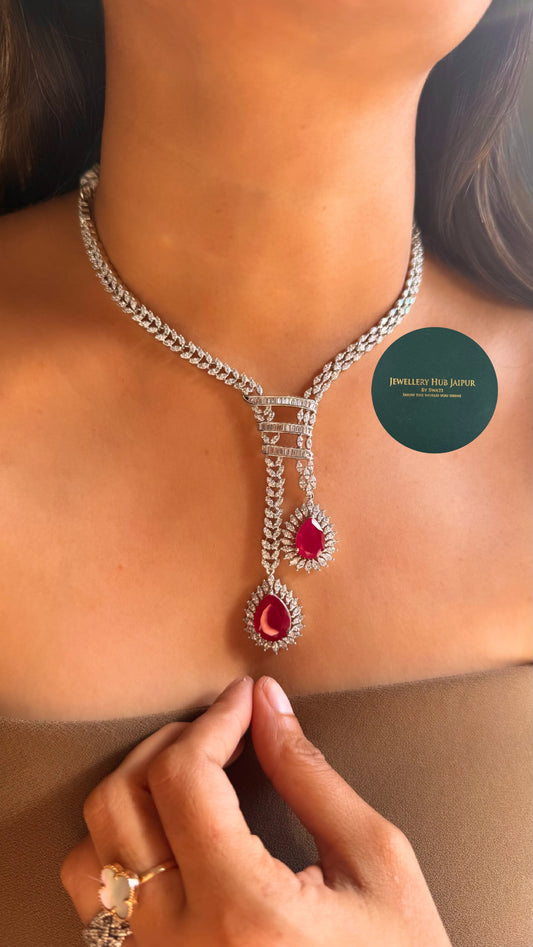 Ruby Diamond dual tear drop collar necklace