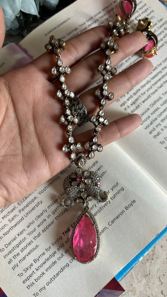 Hot pink Moissanite collar necklace with earrings