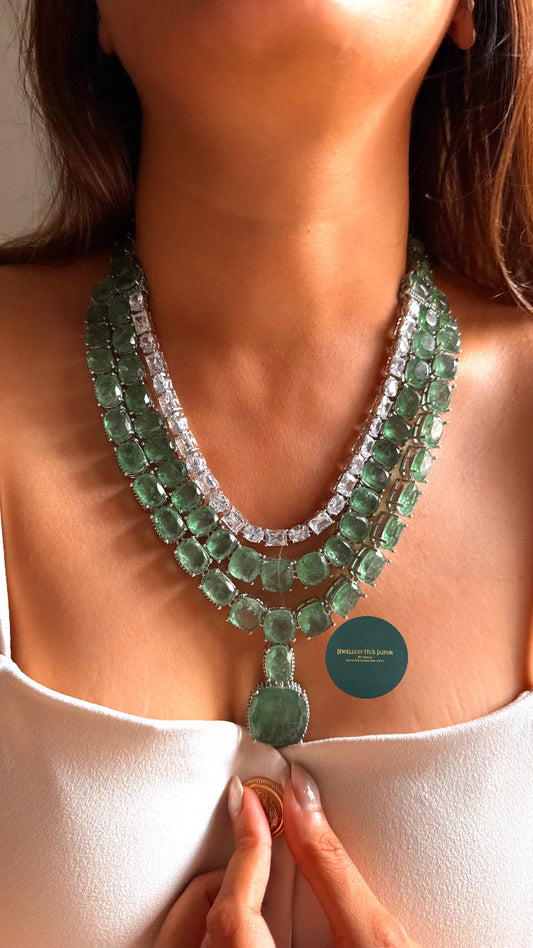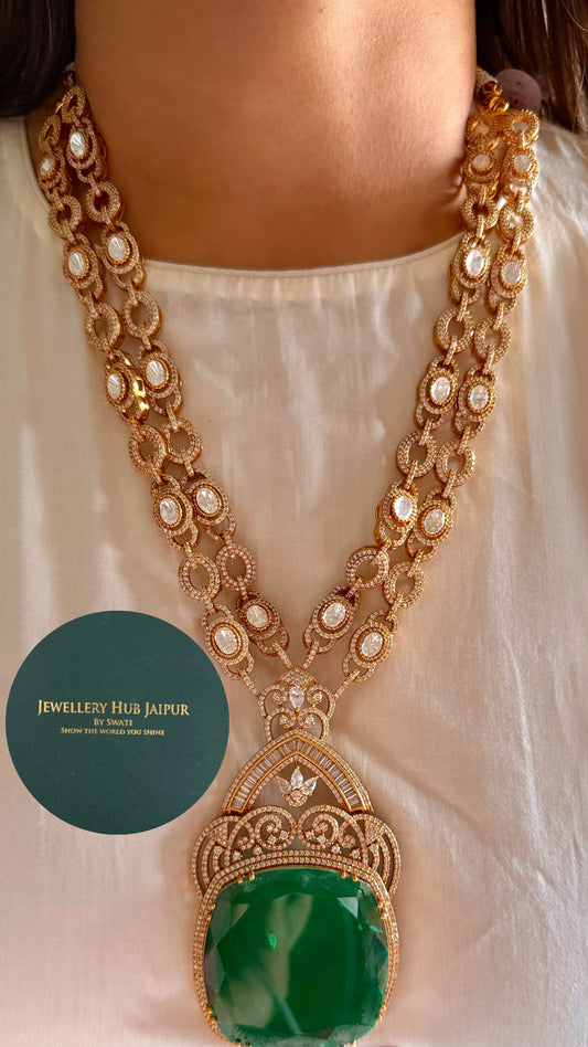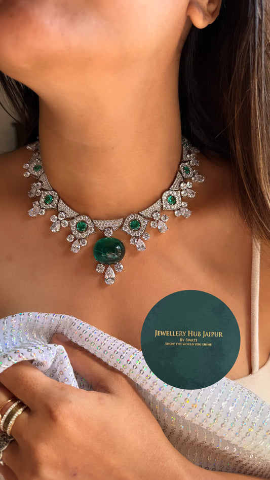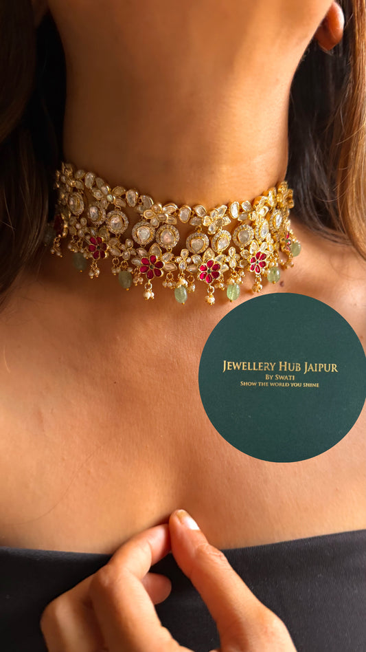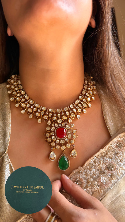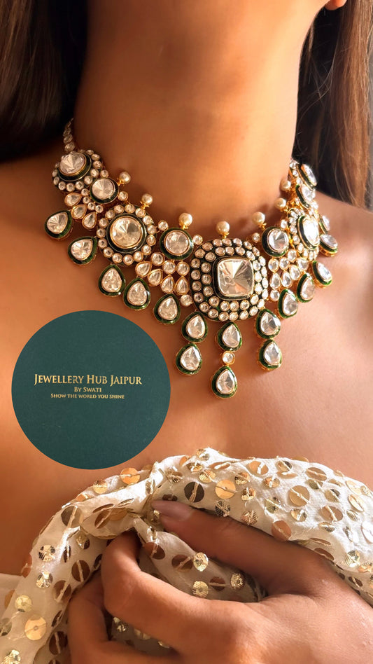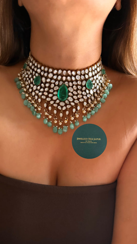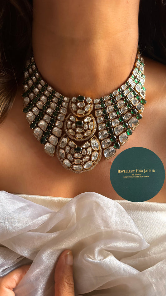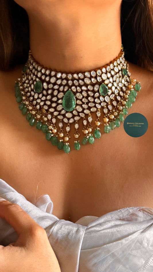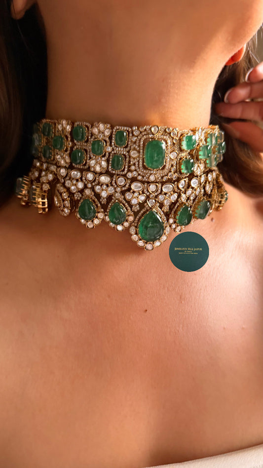 Emerald doublet & moissanite uncut polki Victorian choker set